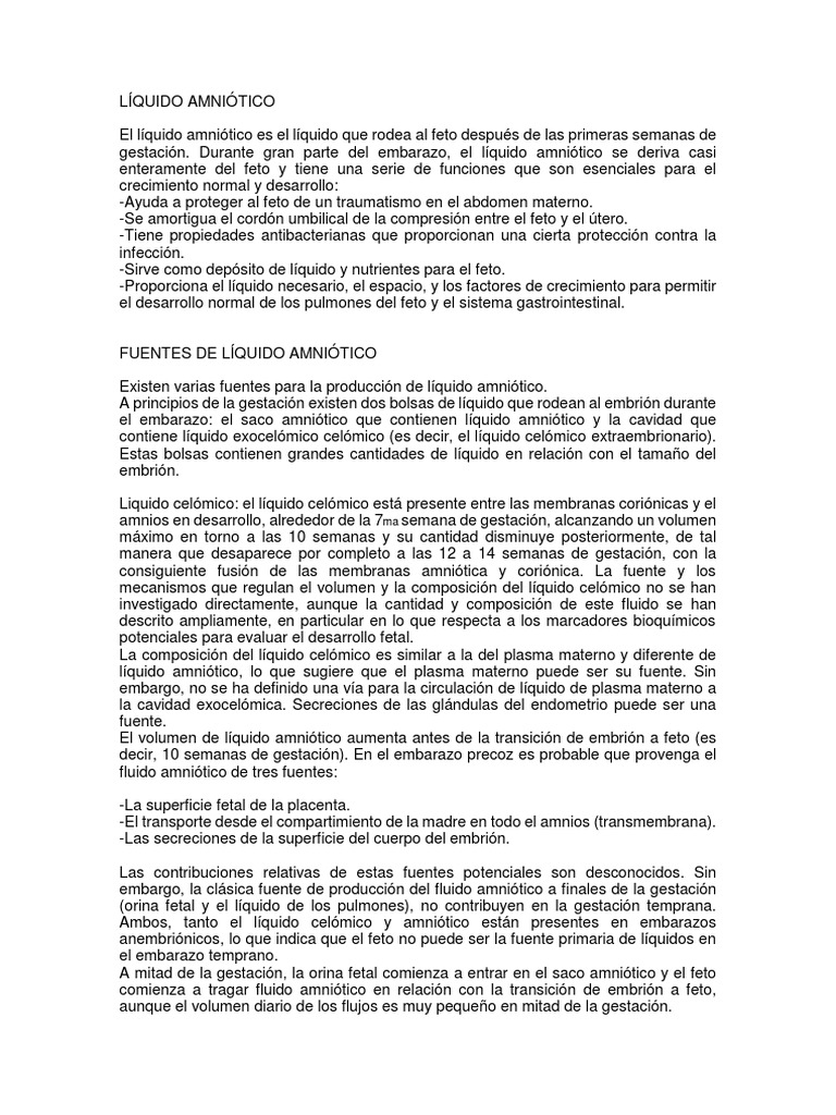 gestación. Durante gran parte del embarazo, el líquido amniótico se deriva casi