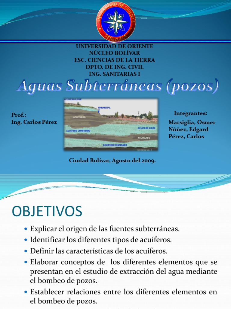 - Acuíferos: su movimiento a través de sus poros cumpliendo