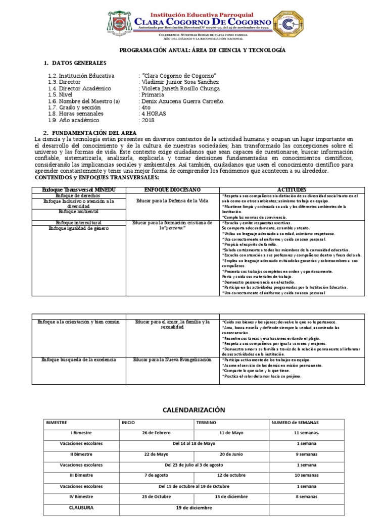 PROGRAMACIÓN ANUAL: ÁREA DE CIENCIA Y TECNOLOGÍA