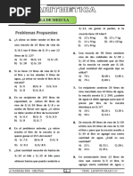 17. Se obtiene 360 gr al fundir dos lingotes cuyas 22. Se tiene 20 L de alcohol de 90°. ¿Cuántos litros