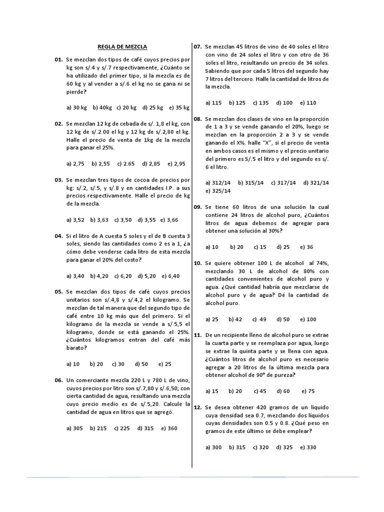 15. Se mezclan 1, 2, 3,4,… kg de un mismo producto b) 8L;4L;6L