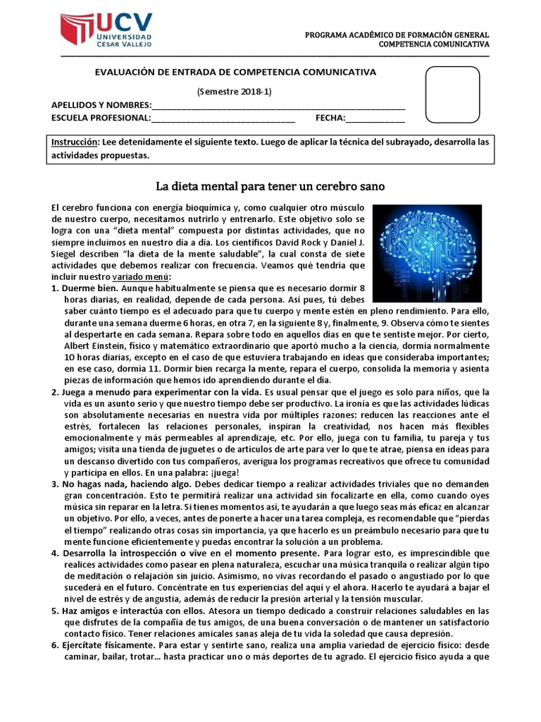 Instrucción: Lee detenidamente el siguiente texto. Luego de aplicar la técnica del subrayado, desarrolla las