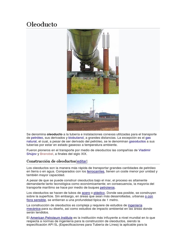 respecta a normas de ingeniería para la construcción de oleoductos, siendo la