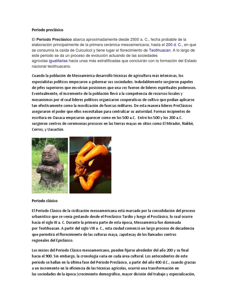 hacia el siglo III a. C. Durante la primera parte de esta época, Mesoamérica fue dominada