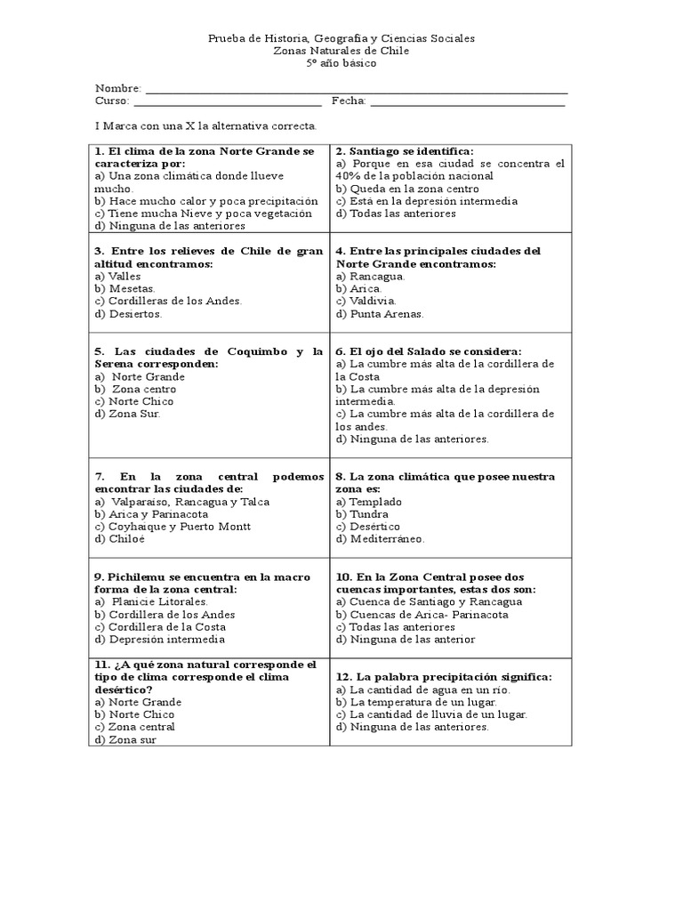 1. El clima de la zona Norte Grande se 2. Santiago se identifica: