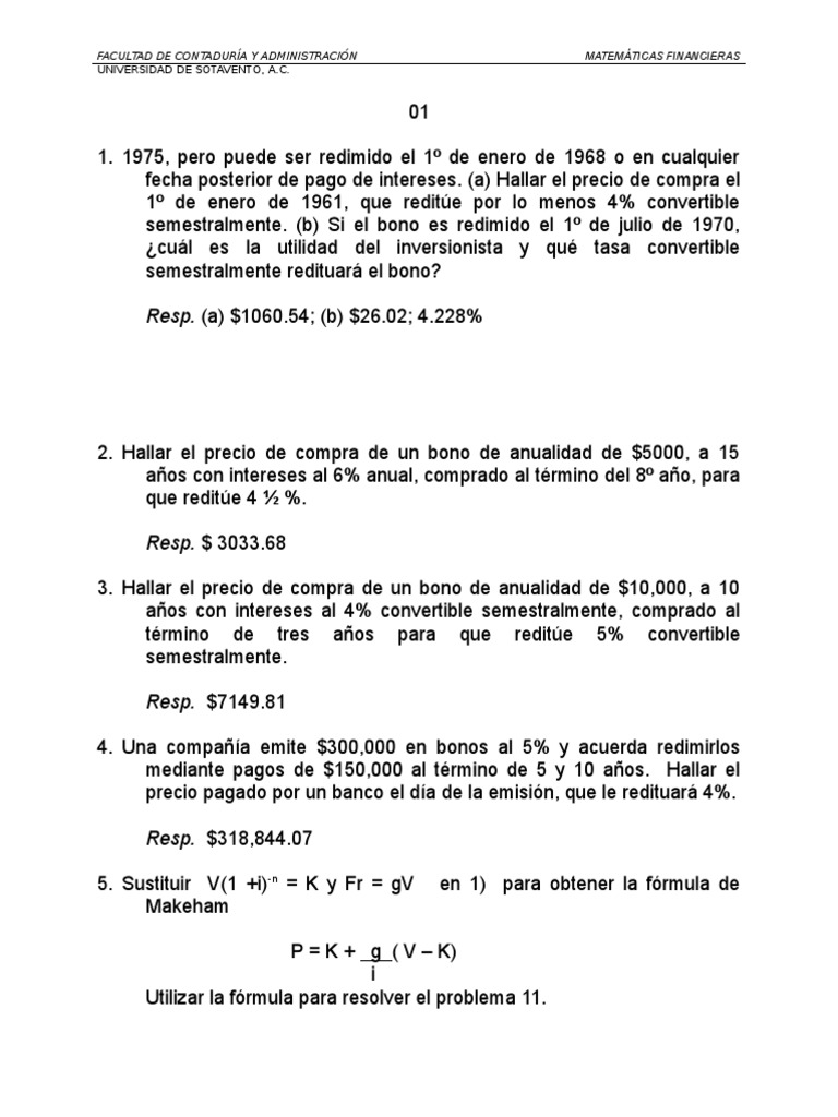 20. Para cada uno de los bonos del problema 13, hallar el precio “con