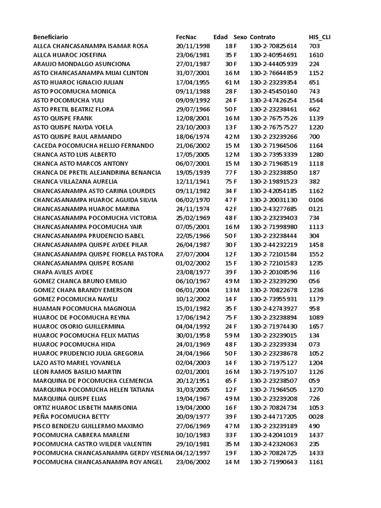 PRETIL CHANCAZANAMPA MARLENI ZORAIDA 02/06/1986 30 F 130-2-43697429 707