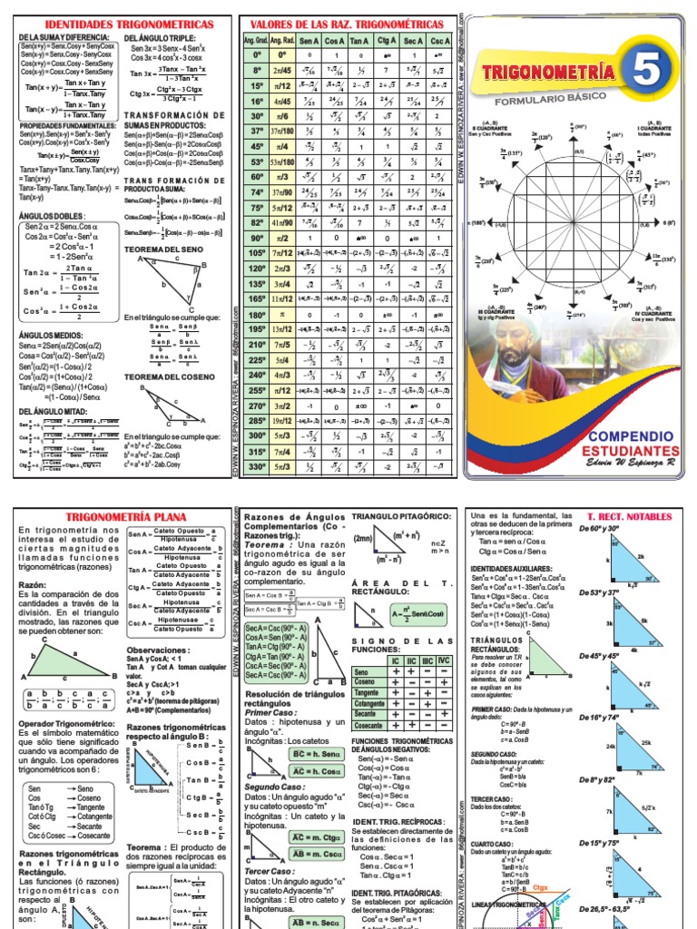 DE LA SUMA Y DIFERENCIA: DEL ÁNGULO TRIPLE: Ang. Grad. Ang. Rad. Sen A Cos A Tan A Ctg A Sec A Csc A