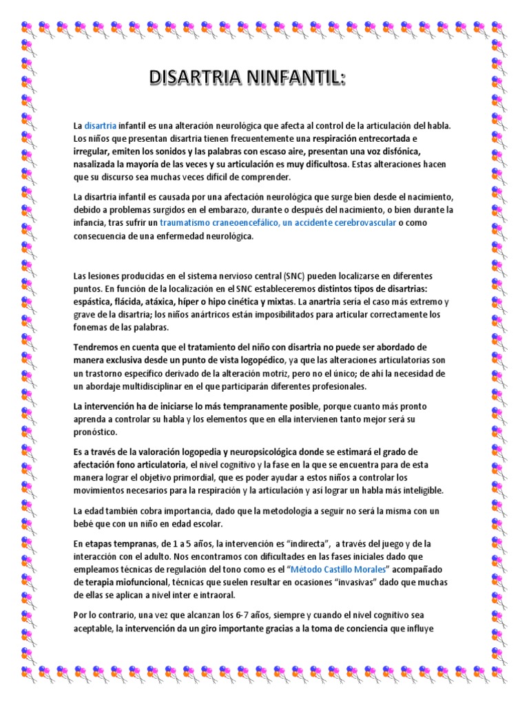 La disartria infantil es una alteración neurológica que afecta al control de la articulación del habla.