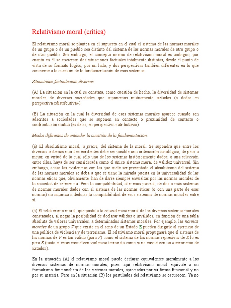 de otro pueblo. Sin embargo, el concepto mismo de relativismo moral es ambiguo, por