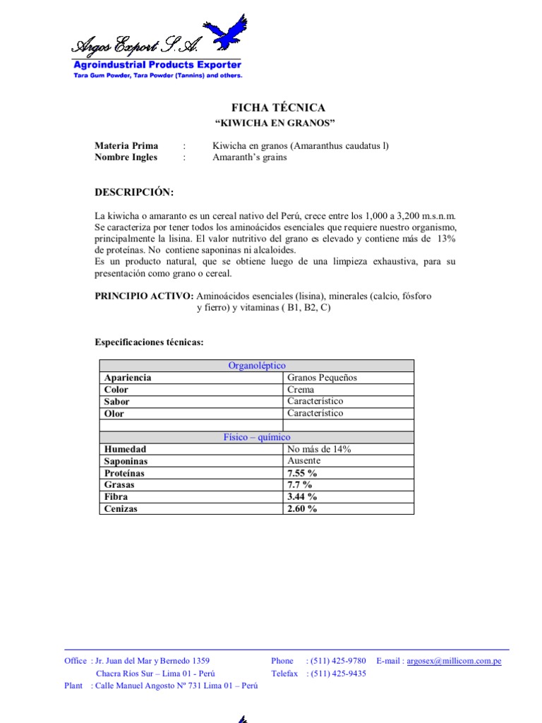 2) oescripción : La Kiwicha o Amaranto, es un cereal nativo del