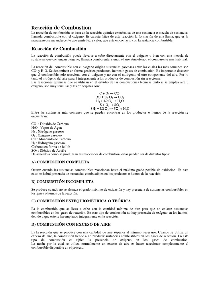 exceso de aire, la combustión tiende a no producir sustancias combustibles en los gases de reacción. En este