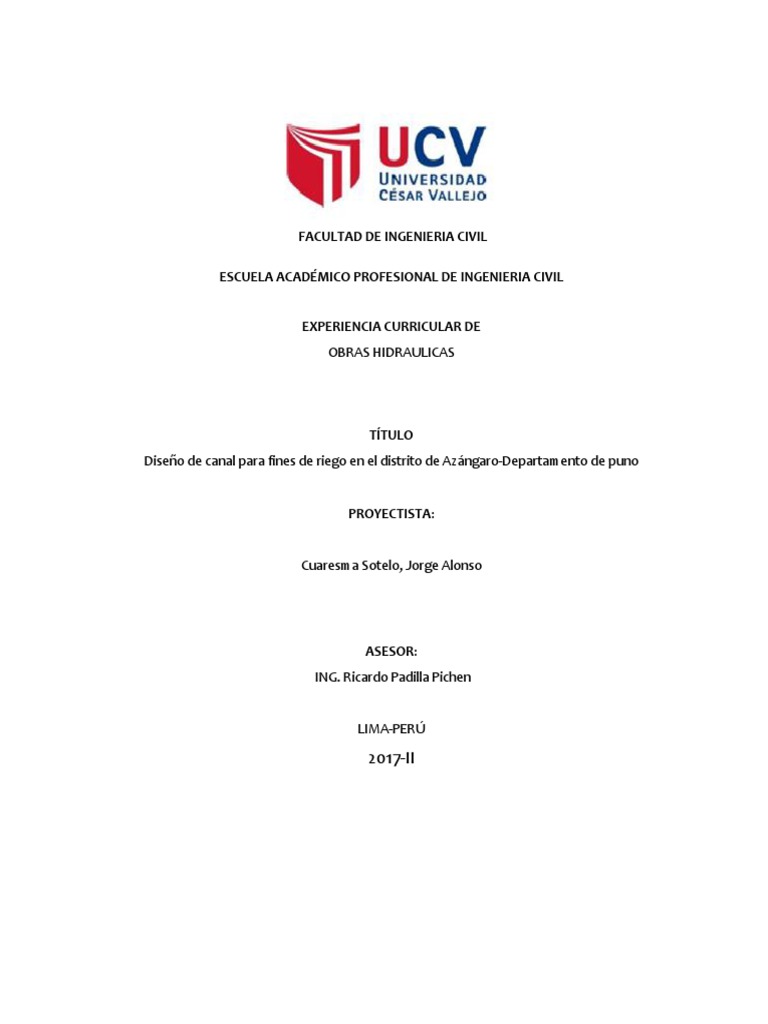 Diseño de canal para fines de riego en el distrito de Azángaro-Departamento de puno