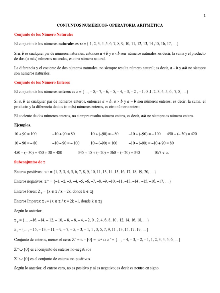 CONJUNTOS NUMÉRICOS- OPERATORIA ARITMÉTICA