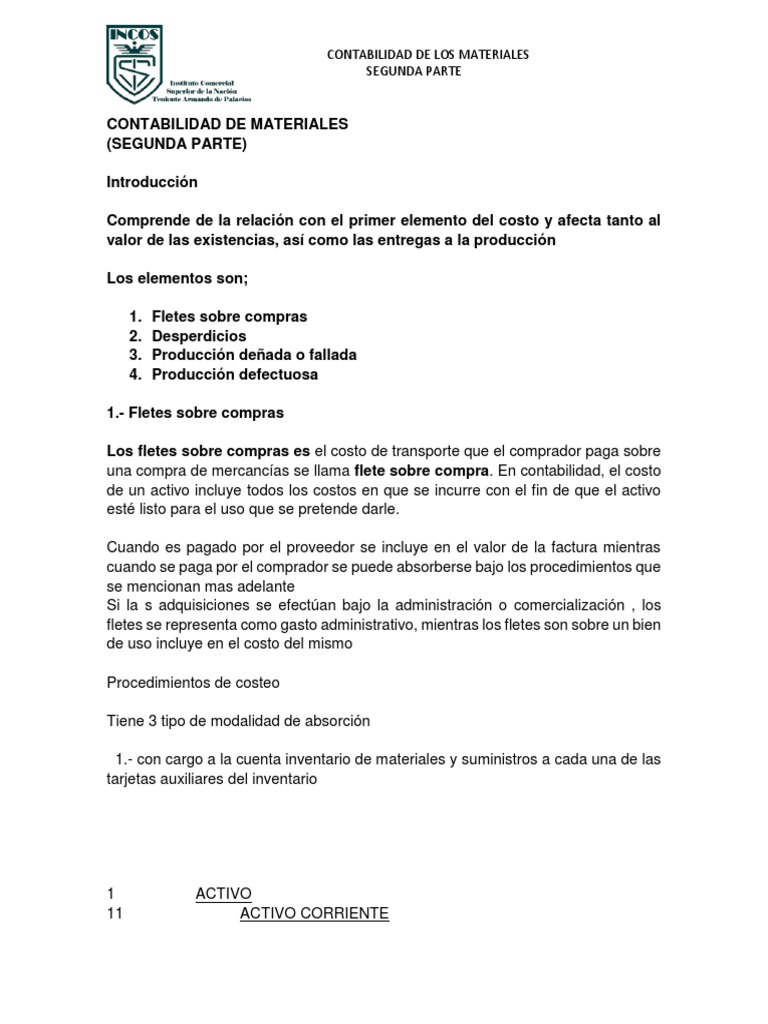 EL IMPORTE DE LOS FLETES SOBRE COMPRAS DE MATERIALES Y