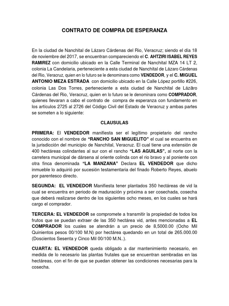 CONTRATO DE COMPRA DE ESPERANZA
