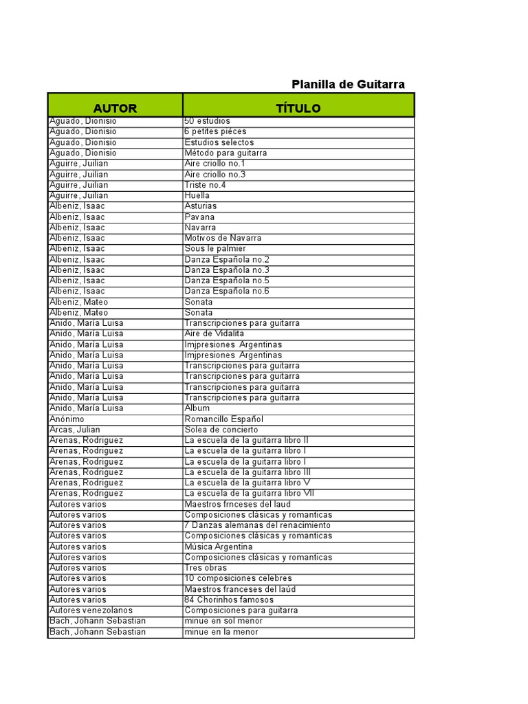 Planilla de Guitarra