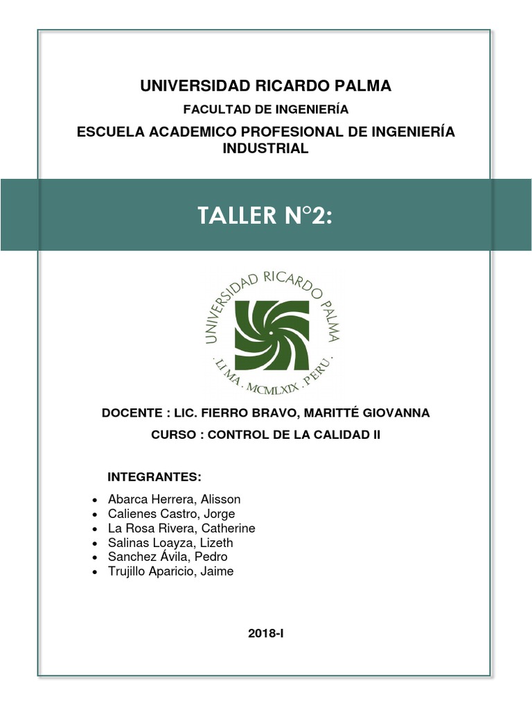 CONTROL DE LA CALIDAD II PROF.: LIC. FIERRO BRAVO, MARITTÉ