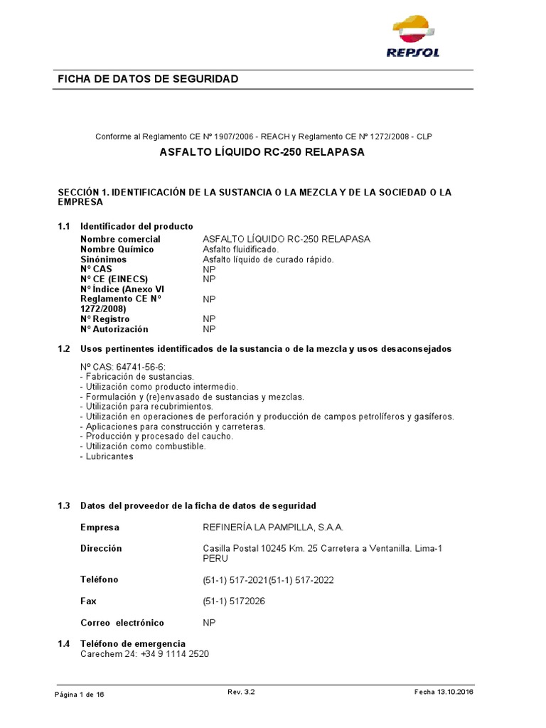 ASFALTO LÍQUIDO RC-250 RELAPASA
