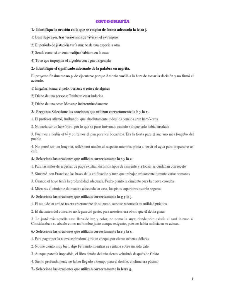 1.- Identifique la oración en la que se emplea de forma adecuada la letra j.