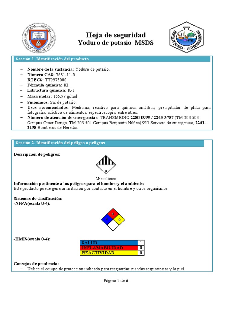Yoduro de potasio MSDS