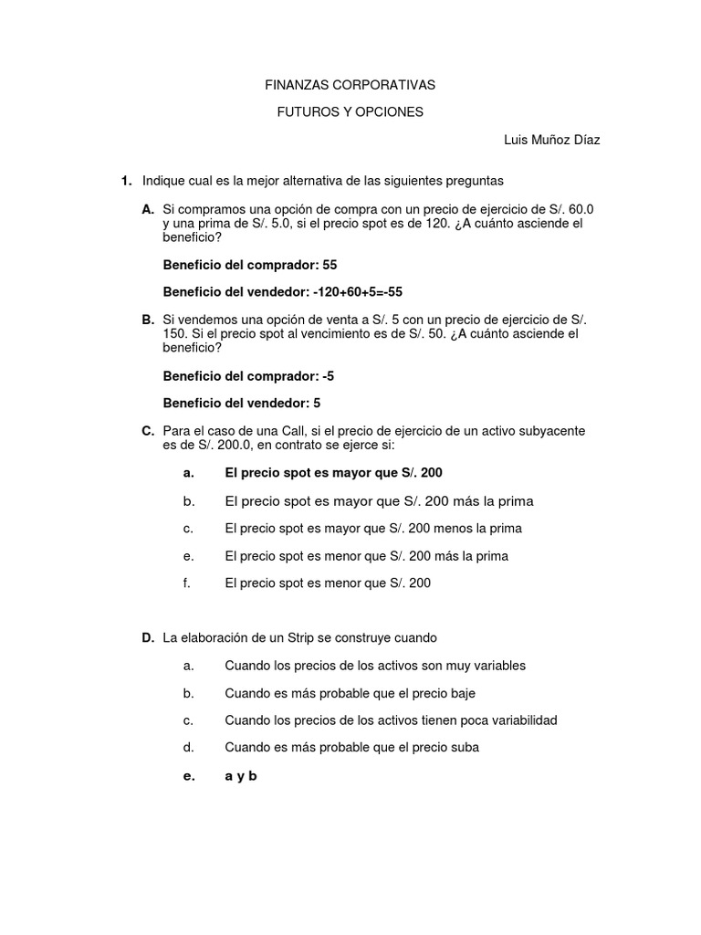 y una prima de S/. 5.0, si el precio spot es de 120. ¿A cuánto asciende el