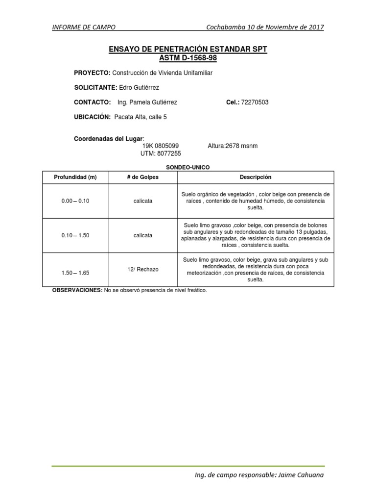 INFORME DE CAMPO Cochabamba 10 de Noviembre de 2017