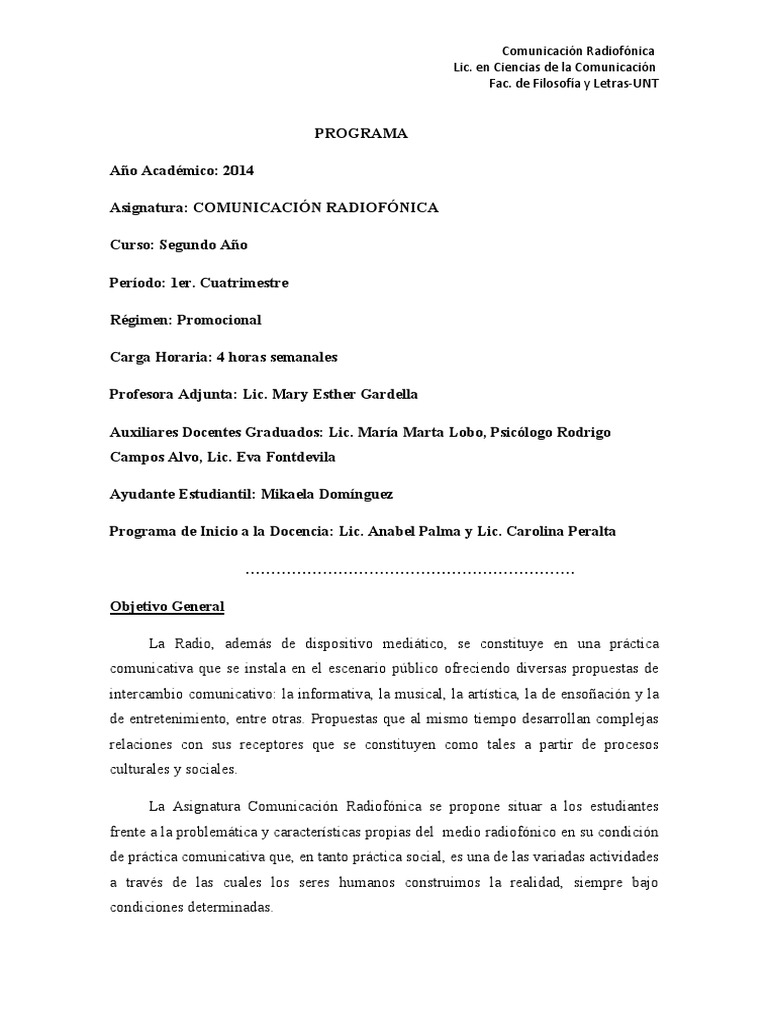 La Asignatura Comunicación Radiofónica se propone situar a los estudiantes