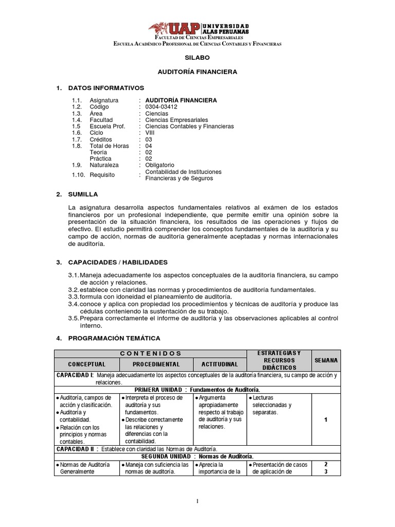 1.1. Asignatura : AUDITORÍA FINANCIERA