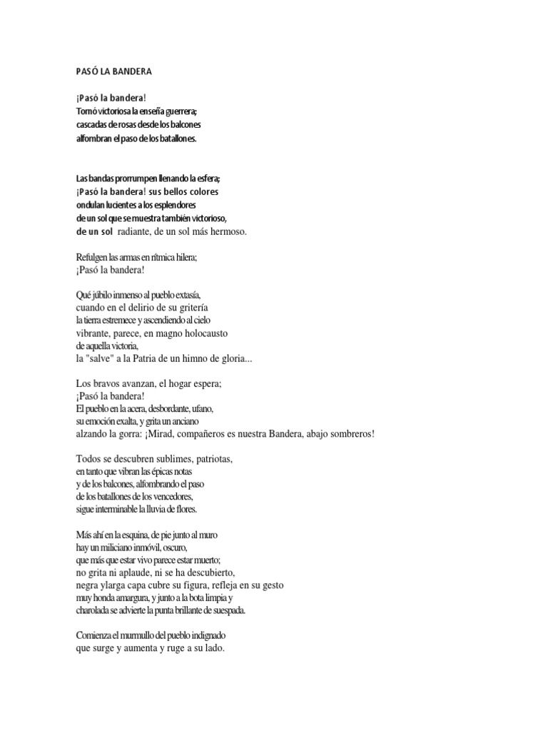 alzando la gorra: ¡Mirad, compañeros es nuestra Bandera, abajo sombreros!