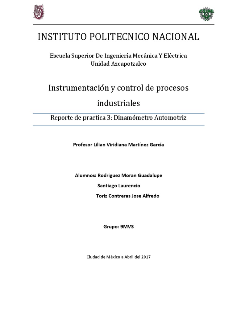 Reporte de practica 3: Dinamómetro Automotriz