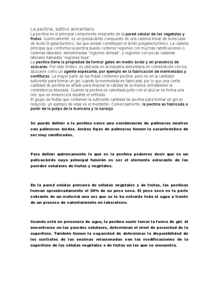 alimenticios. Sus propiedades gelificantes permiten que la pectina sea