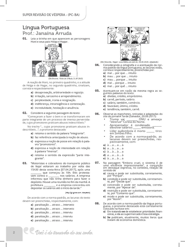 a) paralisação … atraso … interveio 08. De acordo com a norma-padrão da língua portu-