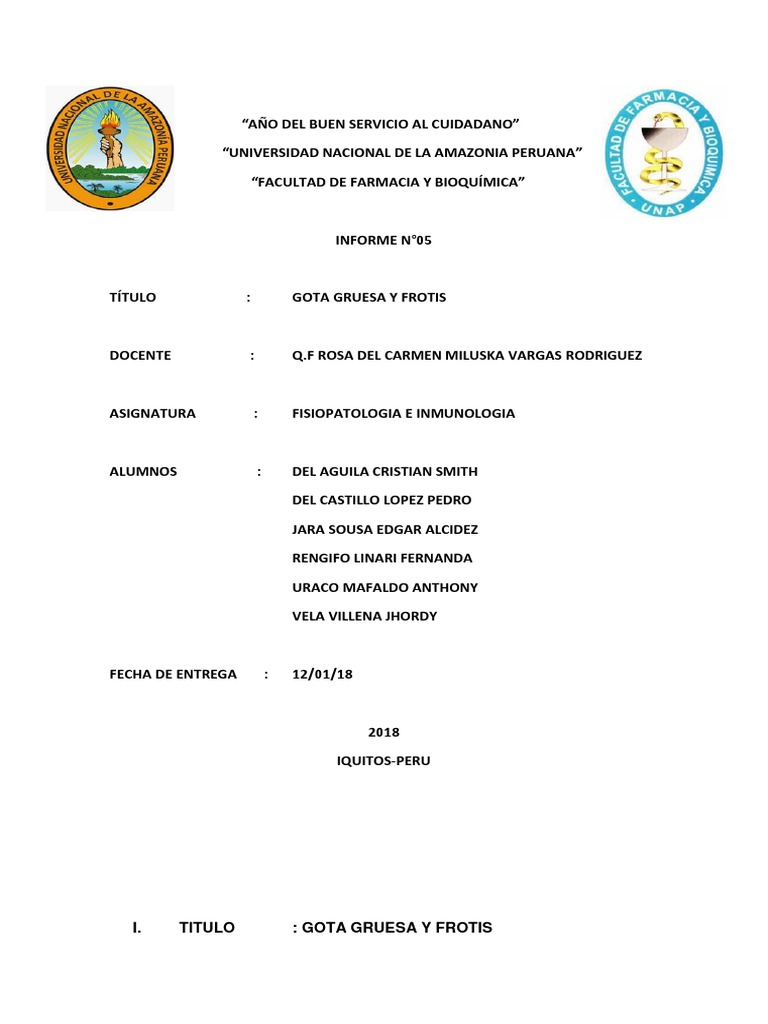 ASIGNATURA : FISIOPATOLOGIA E INMUNOLOGIA