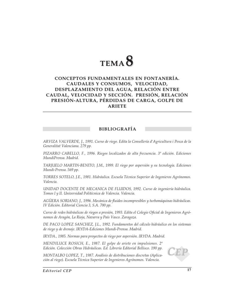 DE PACO LOPEZ SANCHEZ, J.L., 1992. Fundamentos del cálculo hidráulico en los sistemas