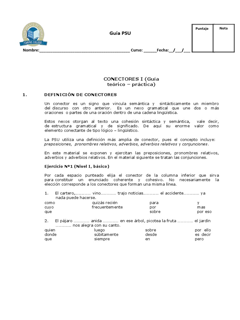 Por cada espacio punteado elija el conector de la columna inferior que sirva