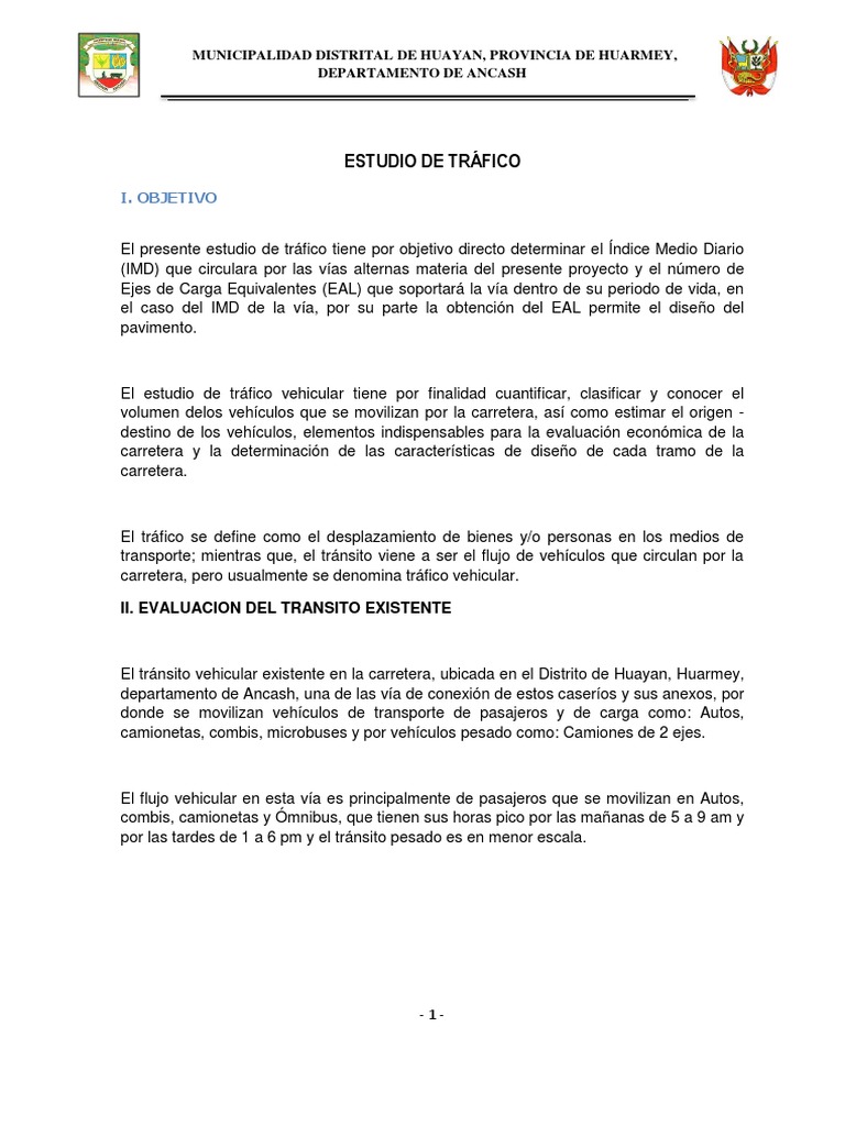 El presente estudio de tráfico tiene por objetivo directo determinar el Índice Medio Diario