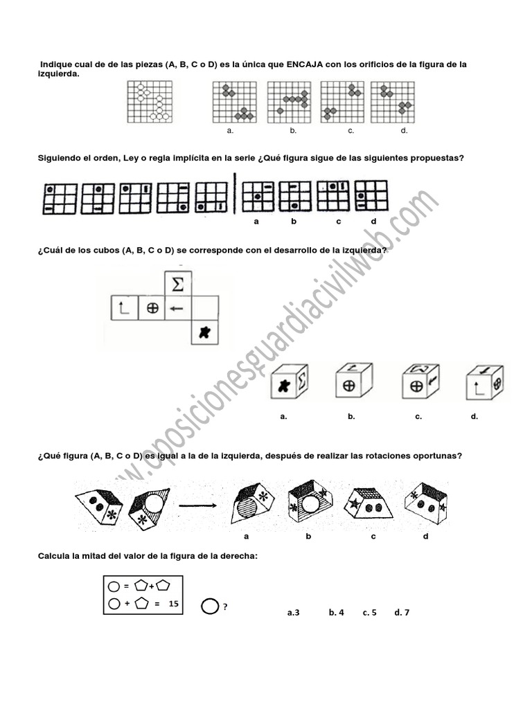 Indique cual de de las piezas (A, B, C o D) es la única que ENCAJA con los orificios de la figura de la