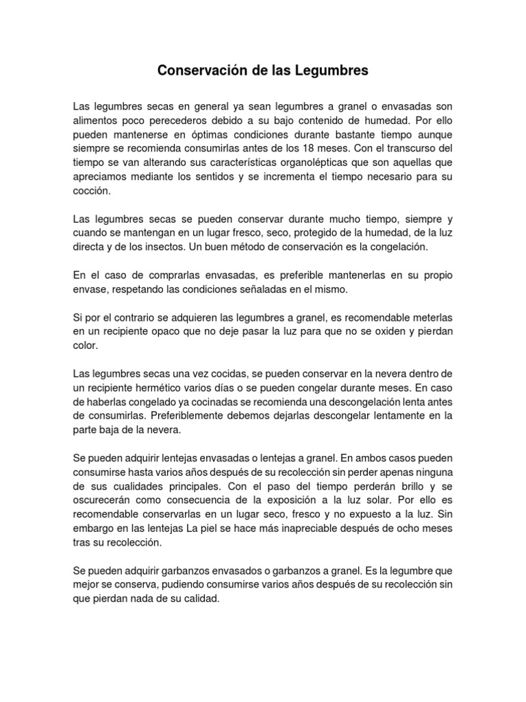 Las legumbres secas en general ya sean legumbres a granel o envasadas son