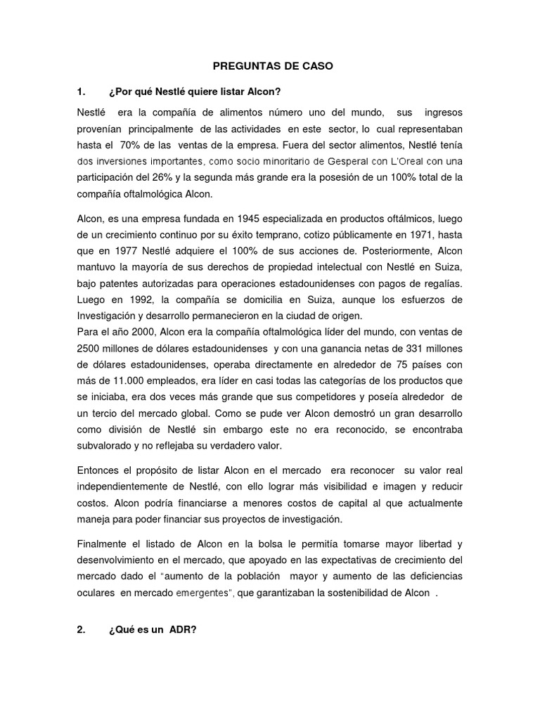 1. ¿Por qué Nestlé quiere listar Alcon?