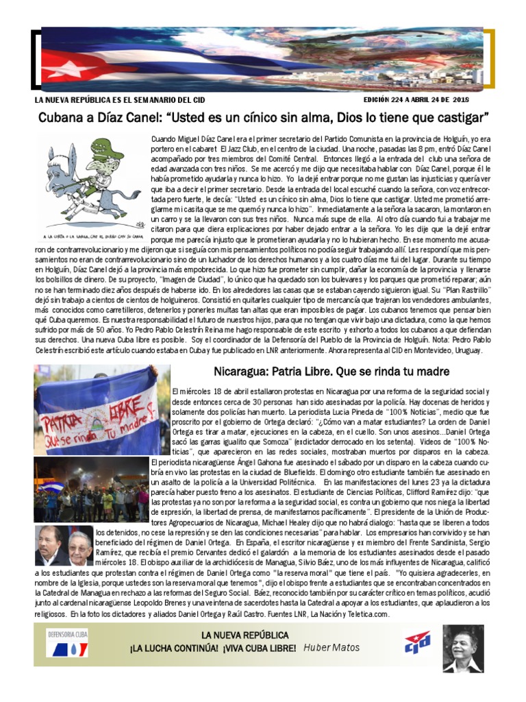 LA NUEVA REPÚBLICA ES EL SEMANARIO DEL CID EDICIÓN 224 A ABRIL 24 DE 2018