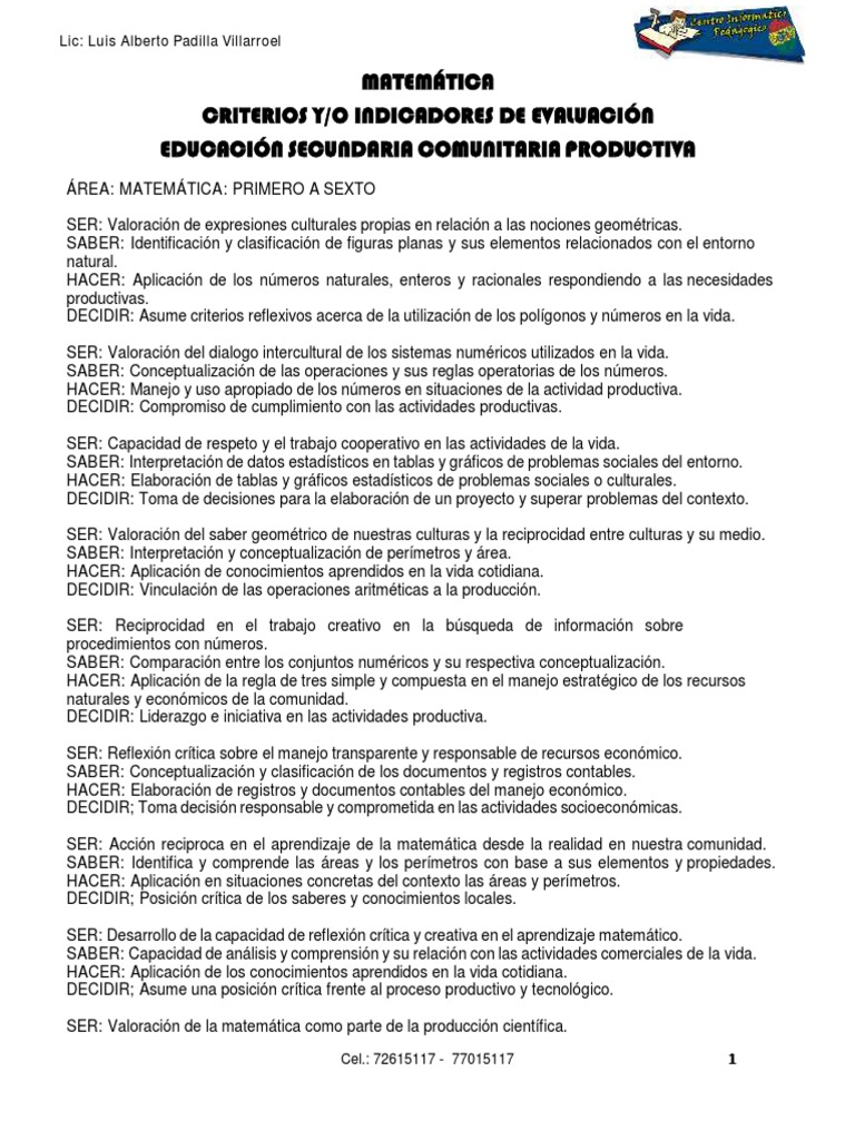 ÁREA: MATEMÁTICA: PRIMERO A SEXTO