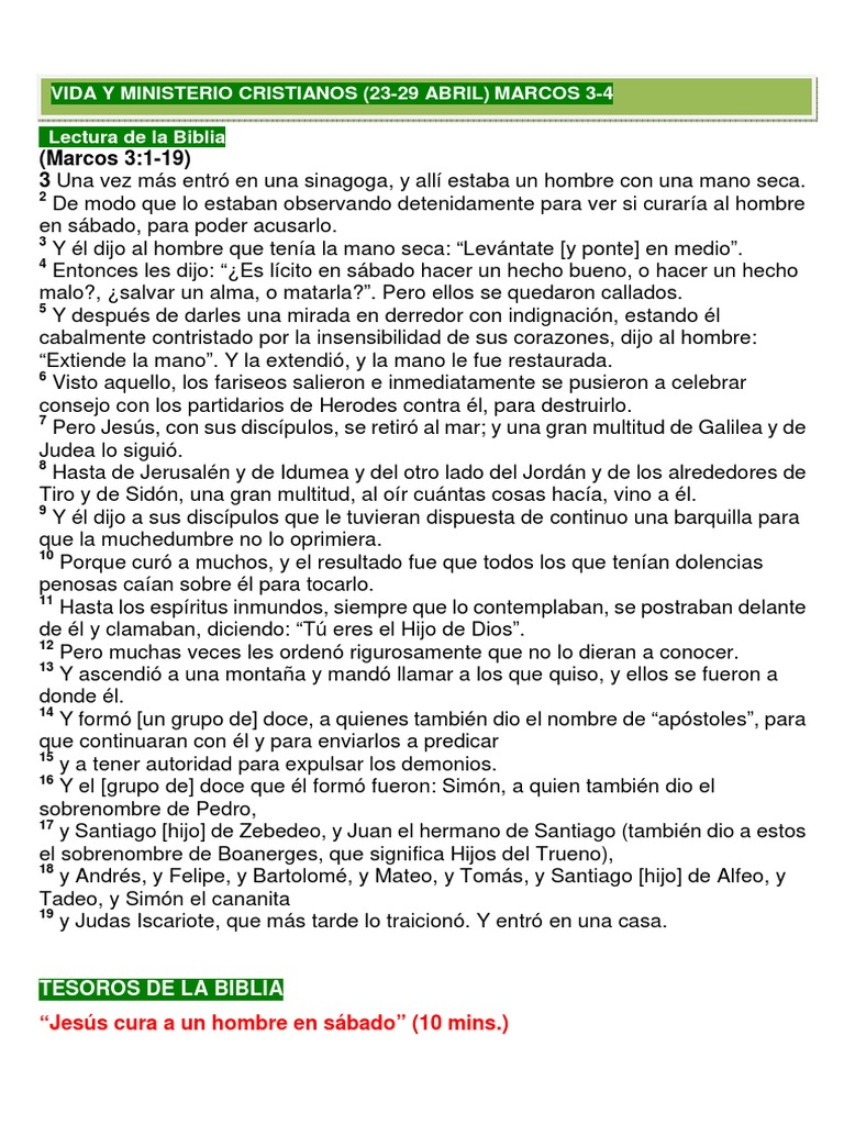 (Marcos 3:1, 2) 3 Una vez más entró en una sinagoga, y allí estaba un hombre