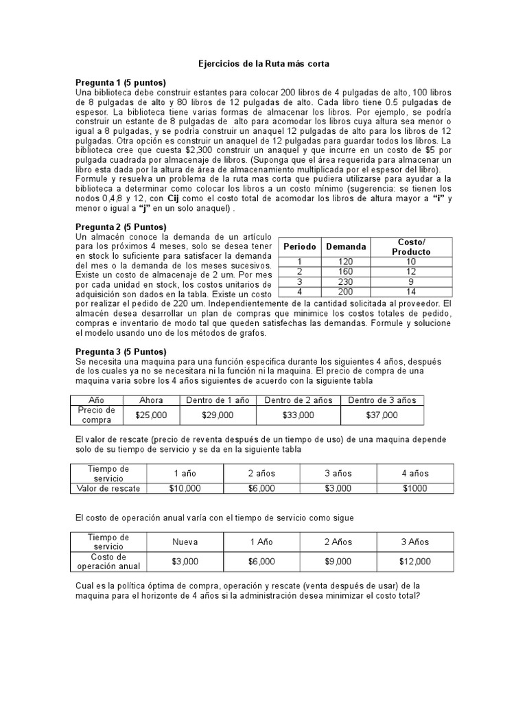 Formule y resuelva un problema de la ruta mas corta que pudiera utilizarse para ayudar a la