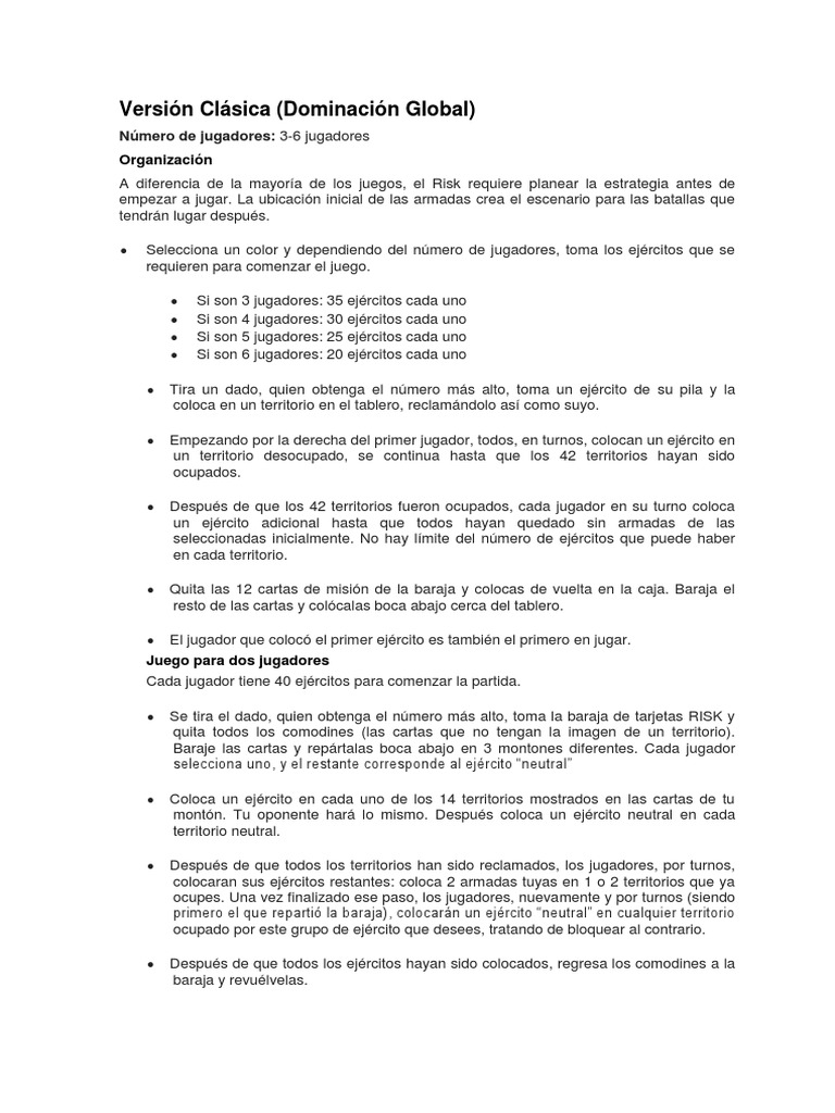 Además de aplicar las instrucciones del juego de Dominación Global, es