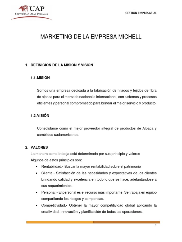 MARKETING DE LA EMPRESA MICHELL