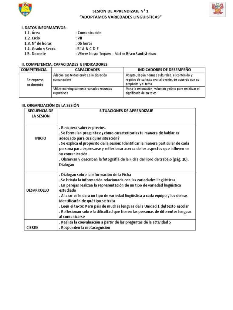 SESIÓN DE APRENDIZAJE N° 1
