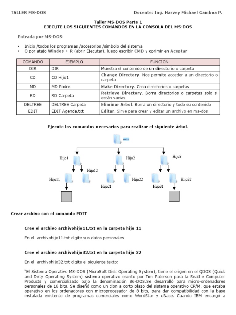 TALLER MS-DOS Docente: Ing. Harvey Michael Gamboa P.