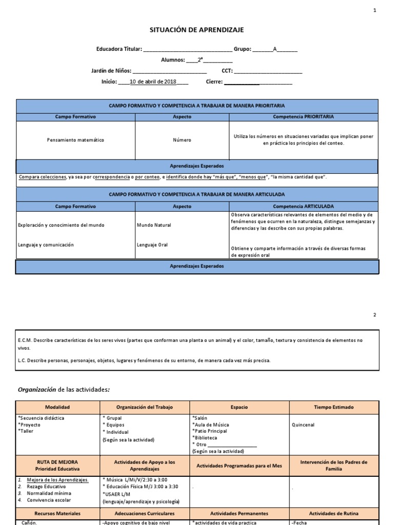 Recursos Materiales Adecuaciones Curriculares Actividades Permanentes Actividades de Rutina