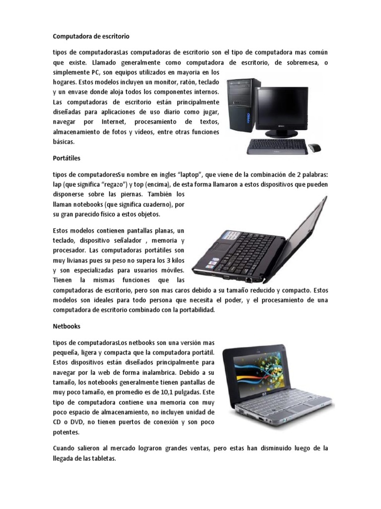 Resumen de Computadoras de Escritorio